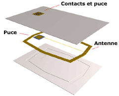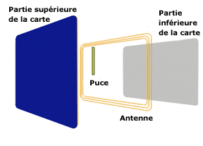 La carte à puce sans contact, au lieu de surfaces de contact, utilise un couplage éléctrique pour réaliser la connexion. Pour fonctionner, la carte doit généralement être placée à proximité (<3 cm) du lecteur.