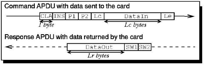 La carte ne prend jamais l’initiative de l’échange d’informations. Elle ne fait que répondre à des commandes de la forme :