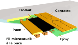 Une carte à microprocesseur contient un composant électronique ou puce dont l'architecture originale fait l'objet de brevets .